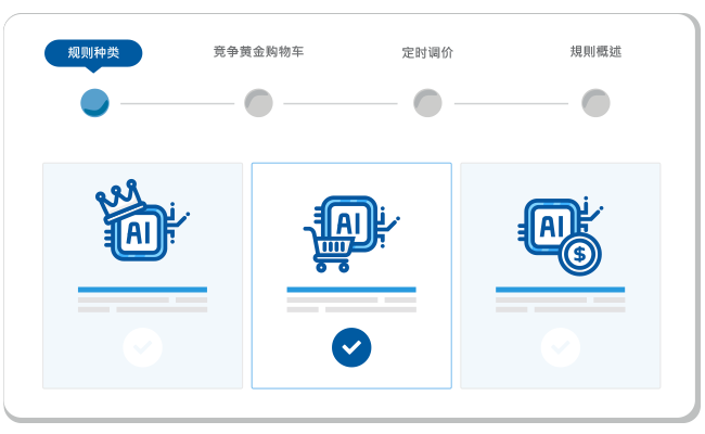 全新AI智能(机器学习)调价软件采用新一代研发技术设计出智慧效能的调价规则。利用数据演算法和数十亿个数据点,AI智能调价技术经过了严格的测试,并基于可靠的演算结果。AI智能调价包括5种无需手动设定但强大的竞价策略:最大化销售,最大化利润和提高商品价格。因此,无论您的目标是提高销售速度还是产生最大的利润,这些策略都足够灵活,强大,可以满足您的抢到黄金购物车并且增加利润的需求。AI智能调价即将突破你认为的竞价极限。