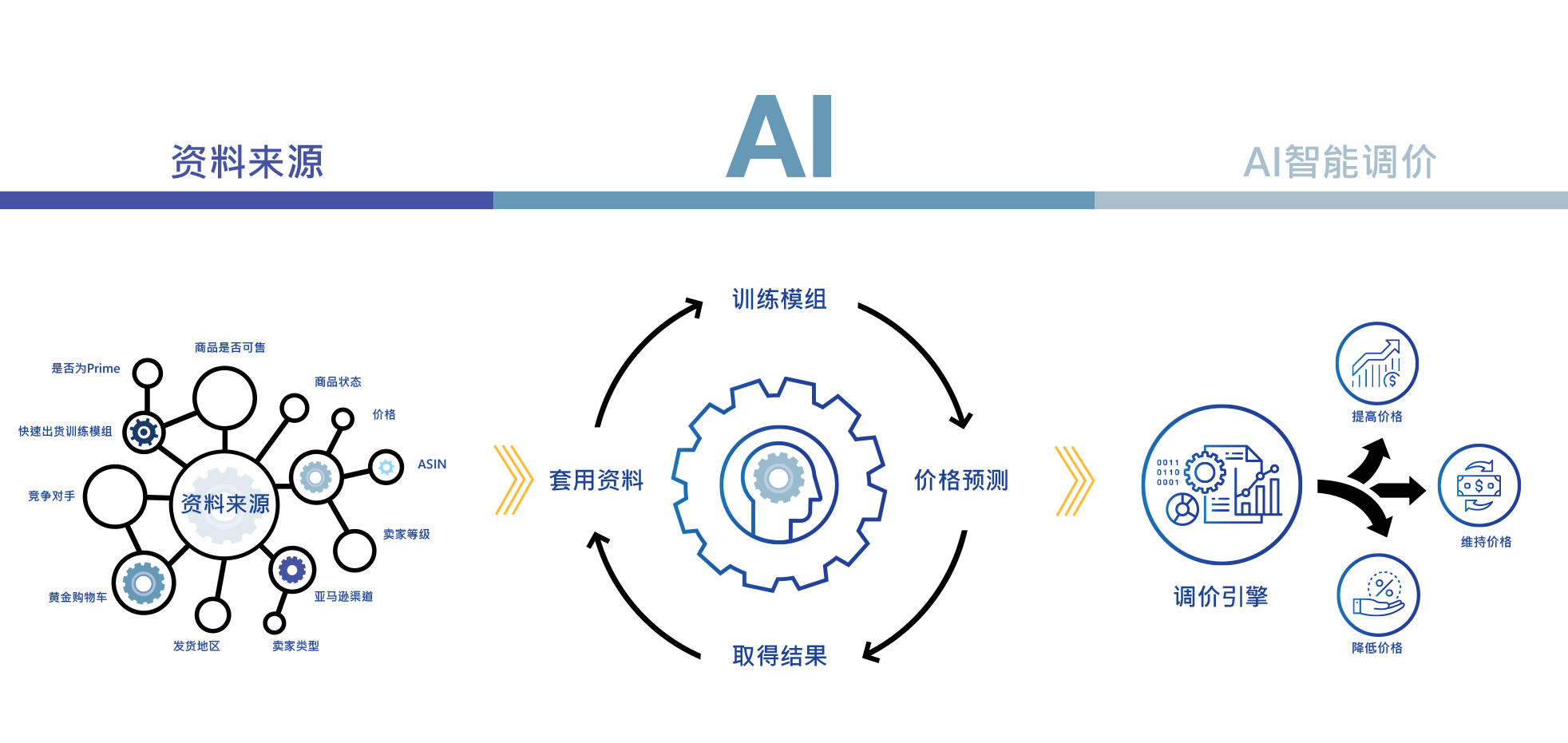 AI智能调价软件是一款经过严格测试并针对竞争对手的人工智能技术。 AI模型建立在数十亿个数据点上,了解每个ASIN在竞争环境的能力并准确预测未来价格走势,为亚马逊卖家带来更大的销售和利润。AI智能调价软件,具有最大化销售,最大化利润以及提高销售价格的智能规则。